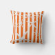 Travesseiro de peixe-estrela laranja com listras. Listras brancas largas e estrelas brancas esbranquiçadas sobre um travesseiro decorativo quadrado laranja-coral brilhante. A divertida design à beira-mar empresta um tema de verão a qualquer sala, seja morando na costa ou no interior.