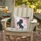 Em um jardim rosa. Silhueta excelente de flores silvestres e borboletas voando como Um garanhão preto está criando