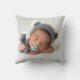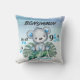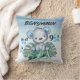 Fique de travesseiro para o bebê. Design apresenta um urso bebê de cor aquática giro em um verde tropical e fundo azul. Personalize com um nome e um estado de nascimento e adicione a foto do bebê ao fundo.
