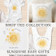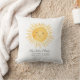 Este lindo travesseiro de bebê apresenta um sol sorridente amarelo. Facilmente personalizável com o nome do bebê e as estatísticas de natalidade, ele faz um presente de excelente para o berçário de um bebê. Original Watercolor © Michele Davies.