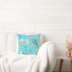Aqui está um travesseiro bonitinho no estilo "boho" com um padrão de homens de neve, estrelas e árvores de Natal bem vestidos. Também no padrão estão flocos de neve azuis ornamentado. Tudo é colocado sobre um fundo azul-claro. A parte traseira do travesseiro tem o mesmo design.