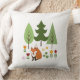 A raposa, flores e árvores de estilo escandinavo, design ilustrativa na frente, com uma caixa de texto em verde correspondente na parte de trás para personalizar e personalizar seu travesseiro.