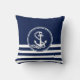 Almofada Estilo Náutico Azul E Branco, Âncora E Fitas