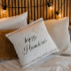 Belo travesseiro decorativo com o Feliz Chanucá em escrevendo decorativo. Personalize com seu nome/ nome da família. Correspondendo itens em nossa loja.