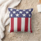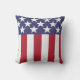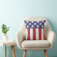 Este travesseiro patriótico apresenta as estrelas e riscas da bandeira americana em vermelho, branco e azul.