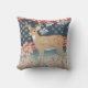 Travesseiro decorativo com o gráfico atordoante de um veado cercado por flores em um fundo de estrelas e listras.
