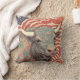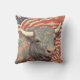 Travesseiro decorativo com um gráfico espantoso de um boi suave coberto por flores sobre as estrelas e listras de fundo. A imagem faz parte de uma série gerada por IA de imagens de animais americanos.