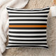 Almofada Estrias Estreitas a Preto e Branco e Laranja