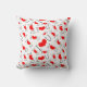 Este travesseiro tem um padrão que consiste na frase "I Angelilli U" repetida várias vezes em várias orientações. A frase é composta pela letra "I" a preto, um símbolo de coração vermelho que representa a palavra "amor" e a letra "U" a preto. O fundo é branco, e os elementos estão espalhados aleatoriamente pela imagem, criando um design romântico e atraente visualmente.