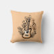 Uma guitarra preta e amarela dourada com uma almofada de notas musicais pretas, Rocke-se até dormir. Almofada para os amantes de guitarra.