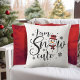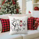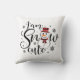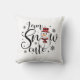 Esta travesseiro divertida e festiva mostra as palavras "Eu sou Snow Cute" em uma escrita decorativa preta com um bonitinho bonitinho bonitinho vestindo um búfalo vermelho e preto com chapéu de cima e cachecol.