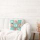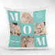 Travesseiro de mãe personalizado com 4 fotos de você e sua mãe, um fundo branco e teal que pode ser mudado para qualquer cor, as letras que soletram MOM, as palavras "melhores amigos para sempre", uma citação fofa, e o nome de quem é.