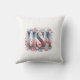 Considere este travesseiro decorativo único dos EUA. Apresenta uma exibição decorativa de cores vermelha, branca e azul.