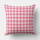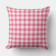 Travesseiro decorativo de verificação de xadrez de eucalipto rosa e gingham branco desenhado à mão.