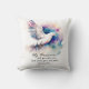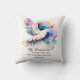 Travesseiro decorativo com uma escritura de citação inspiradora retrata uma bela pomba branca voando pelo céu, suas asas adornadas com salpicos azuis e lavandas de tinta. Ele apresenta uma Bíblia encorajadora do Verse Exodus 33:14, "Minha Presença vai com você, e eu te darei descanso."