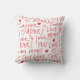 Este travesseiro contém um padrão lúdico de palavras escritas à mão como "AMOR", "ADORE" e "FOREVER", misturadas com formas cardíacas, todas a tinta vermelha num fundo branco. A sobreposição e arranjo aleatório destes elementos cria um design denso e visualmente envolvente. Esse padrão é perfeito para transmitir temas de amor e afeto