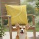 Almofada decorativa amarela brilhante perfeita para o seu pátio. Adicione conforto e charme de uma só vez à área de estar ao ar livre. O design ilustra fatias de limão Meyer empilhadas uma sobre a outra.