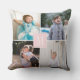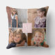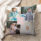 Faça sua própria colagem de fotos e monograma de Travesseiro decorativo personalizado. Este travesseiro moderno mostra uma colagem de quatro fotos da família e seu monograma na frente e quatro fotos diferentes nas costas. No centro há um quadro cor-de-rosa com o seu monograma. Basta mudar imagens e monogramas para criar o seu próprio! Fotografia © Storytree Studios, Stanford, CA