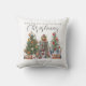 Ilustração de uma casa de fada de toco de árvore decorada para o Natal com duas árvores, luzes de Natal e lanterna. O texto diz, "Desejando-lhe um Feliz Natal" Personalize com o nome.