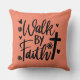 Faça uma declaração ousada de sua fé com esta mensagem simples, mas poderosa de "Caminhar por Fé". O design deste travesseiro decorativo apresenta uma cruz preta, flores e corações, contra um fundo rosa-pincelado. Este seria um presente perfeito para um aniversário, Dia de as mães ou Natal para aquela pessoa especial de fé na sua vida.