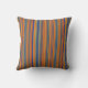 Um atraente design finamente listrado em tons de laranja, vermelho, verde e azul. Nessa versão, o padrão na parte traseira da almofada é o inverso do design frontal, permitindo que o design varie conforme seja colocado.