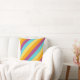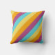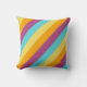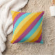 Travesseiro decorativo vibrante com faixas diagonais em tons laranja, amarelo, rosa e azul. Adiciona um pop de cor e energia a qualquer espaço.