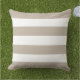 O design travesseiro exterior simples apresenta um padrão de faixas horizontais brancas largas com um fundo bege neutro. Design clássico com qualquer estilo de decoração. A cor de fundo pode ser modificada.