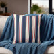 Chic, estilo náutico para sua casa de praia ou sala de verão. Nosso clássico travesseiro decorativo listrado apresenta listras verticais em azul marinho náutico e vermelho-escuro mutado em um fundo de marfim creme.