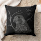 Trabalho de arte de preto e branco de um falcão peregrino enquadrado por ramos de árvore nu na frente do travesseiro, preto sólido na parte traseira. Use o modelo de texto personalizado fácil para adicionar um nome, um monograma, uma palavra inspiradora, uma frase favorita curta ou outra mensagem especial na fonte do estilo de escrita manual. Edite para mover elementos ou altere o plano de fundo para qualquer cor desejada. ♡ Idyllfire