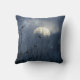 Corvos num mundo de fantasia azul de árvores e a lua enquanto escorrega atrás de nuvens sobre um bonito travesseiro celestial.
