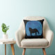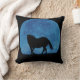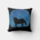 Linda lua azul cintilante que silhueta um cavalo forte. Este é um travesseiro decorativo de fantasia divertido.