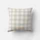 Travesseiro decorativo de fazenda moderno, concebido por medida personalizada, que inclui um monograma personalizado e o nome da família no padrão de verificação/xadrez/gingham de búfalos beges.