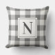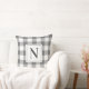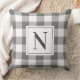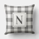 O travesseiro decorativo neutro do estilo fazendeiro apresenta uma cinza escura tradicional clássica e moderna e padrão de xadrez de verificação de gingham branco com um monograma da família personalizado design que pode ser personalizado em ambos os lados do travesseiro. Nota, o texto preto suave e a cor de fundo da cinza de carvão podem ser personalizados para coordenar com a decoração doméstica.