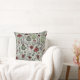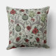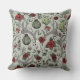 Esta elegante travesseiro de natal de fazenda apresenta um padrão desenhado à mão de crânios de renas enfeitados em rosas vermelhos e creme com flores festivas de poinsettia, cactos, groselhas de inverno holly e vermelhas, todos contra um elegante fundo verde de sábio. Ideal para a época de férias ou para o casamento de Natal do país.