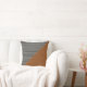 Essa tendência, design geométrica mínima, apresenta uma manta de retalhos de dois triângulos, uma das roupas de cinza de carvão sujo com pinças brancas horizontais à esquerda, e outra com couro bronzeado à direita. Uma costura falsa correndo diagonalmente pela gravatas central, as duas seções juntas, fazer para uma adição na moda à sua casa.
