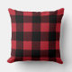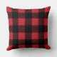 design de travesseiro decorativo na moda apresenta um padrão de xadrez de búfalos vermelho e preto moderno de fazenda rústica.
