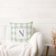 O travesseiro decorativo neutro do estilo da fazenda apresenta um padrão clássico, moderno e tradicional de xadrez de verificação de gingham verde e branco com o monograma da família personalizado design de letra inicial que pode ser personalizado em ambos os lados do travesseiro. Nota, o texto da cinza de carvão e a cor do plano de fundo do sábio podem ser personalizados para coordenar com a decoração inicial.