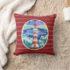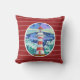 Como um farol na noite! Trabalho de arte de um farol colorido, no travesseiro vermelho de creme com pinstripes brancas. Perfeito para a casa de praia!