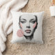 A bold and glamorous throw pillow featuring a hand-drawn female portrait in precise graphite linework. Her confident gaze and defined features are enhanced with soft blush pink accents on the lips, cheeks, and background — blending fashion illustration with minimalism. This design brings high-end editorial vibes to any chic or modern interior. Perfect for beauty lovers, fashionistas, and design-forward spaces.