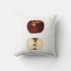 Maçã vermelha brilhante em travesseiro decorativo branco simples. Muito simples e tão doce.