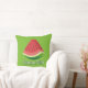 Coloque uma fatia vermelha de melancia sobre fundo verde claro. Texto personalizado de ambos os lados.