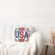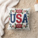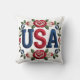 Mostre seu orgulho patriótico com este travesseiro com um falso design com flores vermelhas, brancas e azuis bordado por "EUA".