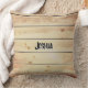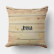 Uma almofada de na moda com uma aparência rústica de madeira na frente, creme comum colorido na parte de trás. Em um estilo informal de país, a almofada pode ser personalizada com seu nome ou outro texto.
