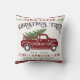 Este travesseiro decorativo personalizado da Árvore de Natal apresenta um caminhão vermelho retrô com uma árvore de Natal no fundo. No topo diz FAZENDA FRESH CHRISTMAS TREES. Seu nome familiar aparecerá no lado do caminhão de coleta vermelho. É fácil personalizar com o seu nome escolhido.