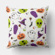 Um pouco fofo, um pouco assustador padrão do Dia das Bruxas com crânios verdes de zumbis, fantasmas, abóboras, caixões roxos, chapéus de bruxa, morcegos, doces e garrafas de poção. O reverso tem o mesmo padrão em uma repetição maior.