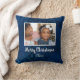 travesseiro decorador de "Feliz Natal" com sua foto favorita em um fundo azul marinho. Personalize com o ano.