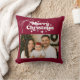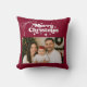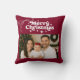 Um fundo vermelho, vermelho de morango, texto branco e um arco desenhado à mão. Texto e foto. Feliz Natal é escrito com uma fonte de estilo retrô.