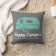 Um travesseiro de sotaque alegre, perfeito para seu campista ou RV. Mostrado com uma cinza de carvão e design de campista cor de lacre com a frase "Happy Campers". Personalize seu nome de família para torná-lo de um tipo. A cor de fundo também pode ser alterada para corresponder ao decoro e às preferências.