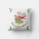 Este adorável ratinho é a estrela deste design. Prontos para o feriado, o Sr. ChrisMouse está vestindo seu lenço vermelho com uma corda branca. Com a sua bengala doce na mão, ele está aqui para lhe desejar uma "Feliz ChrisMouse". Nos quatro cantos há um sotaque de bagas sagradas e vermelhas. Na parte de trás do travesseiro, há um padrão repetitivo com o chocolate quente e o Sr. ChrisMouse.