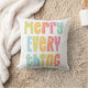 Adicione um pop da cor a sua decoração do feriado com este travesseiro decorativo do divertimento. Tem as palavras "feliz cada coisa" escrita em letras coloridas no branco. É perfeito para qualquer um que está interessado na decoração do feriado em umas cores não-mais tradicionais.